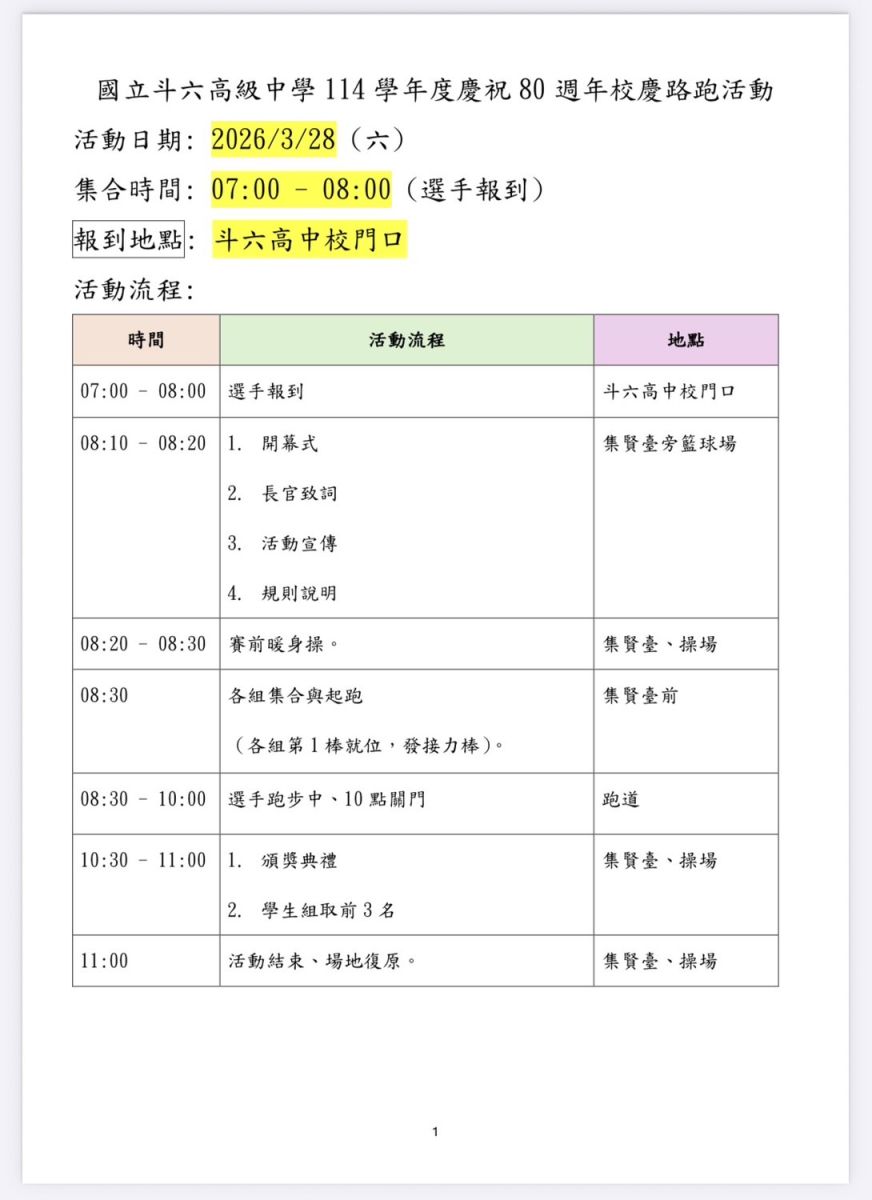 2026.03.28斗中慶祝建校80週年路跑活動