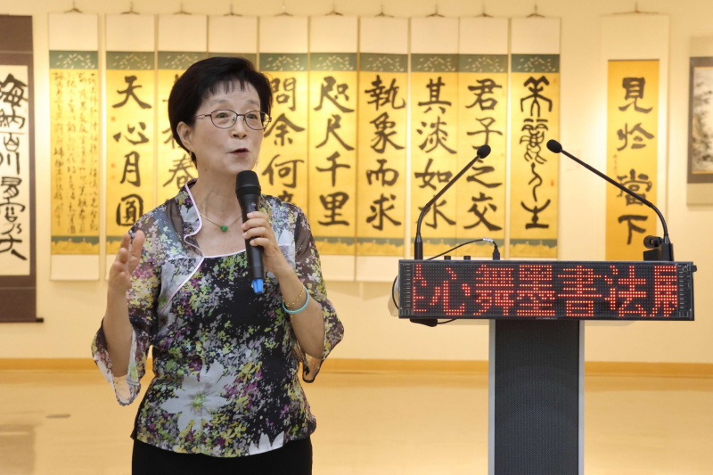 本次展出近百件作品,涵蓋甲骨文、金文、篆、隸、行、草、楷等多種書體。筆勢蒼勁而不失婉約,墨韻濃淡相生,展現傳統書藝的精神風貌與現代女性創作者的溫度。吳老師以「從心之年、從心抒發、重新創作」為題,傳達「不忘初心、傳薪船心、菩提心」的創作信念。書法是中華文化的瑰寶,凝聚文字的美學與心靈的智慧。「從心舞墨」不僅是一場藝術饗宴,更是一段靜心旅程。誠摯邀請民眾於秋意濃濃的季節走入展場,在筆墨流轉間體會文字的生命力,讓心靈隨墨香共舞。