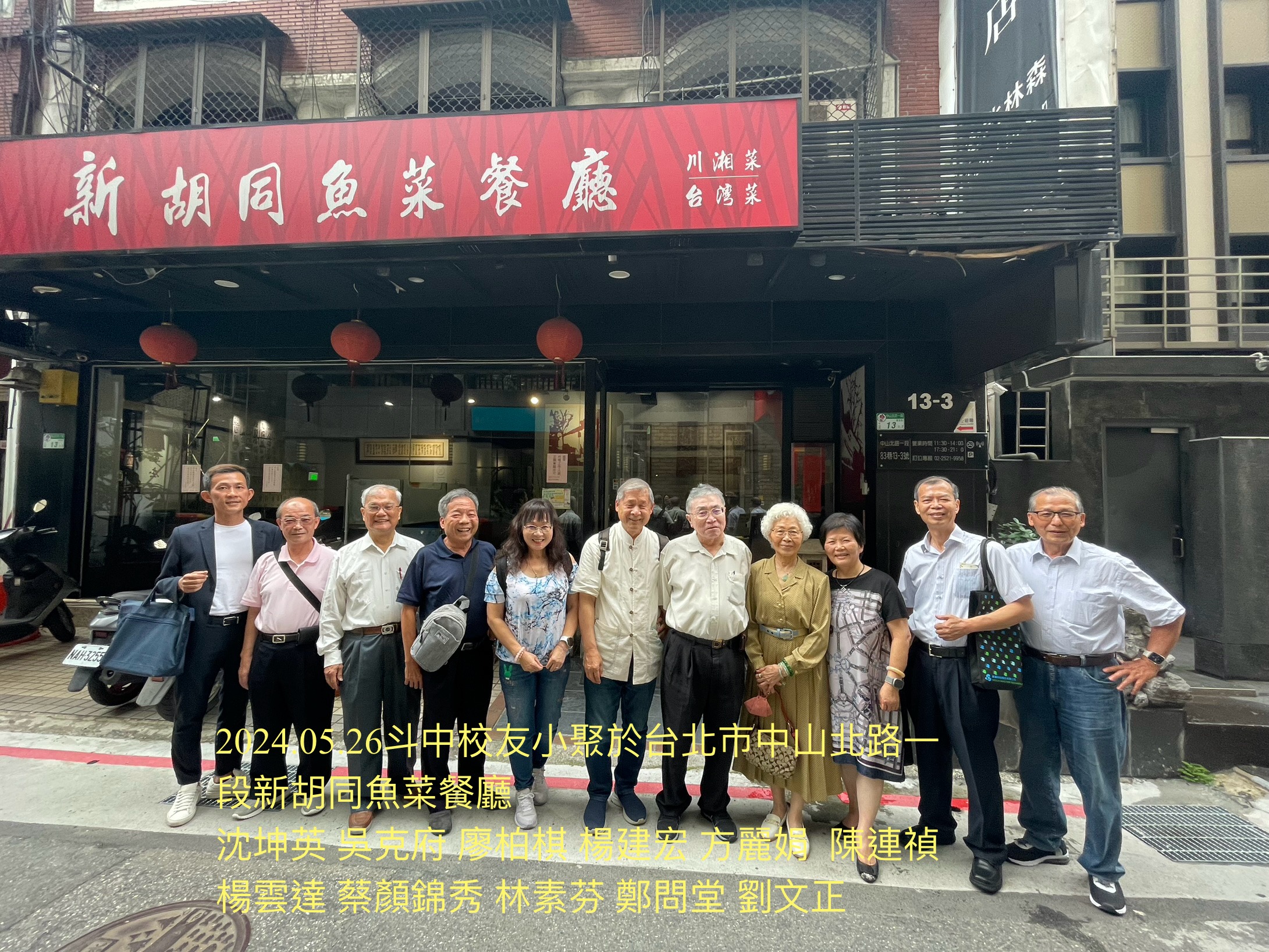 2024.05.26斗中校友小聚於台北市中山北路一段新胡同魚菜餐廳(第16屆至第44屆)
