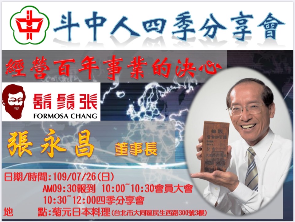 2020.07.26斗中人四季分享會第十七場『經營百年事業的決心』,由鬍鬚張董事長(故鄉斗六)張永昌先 ...